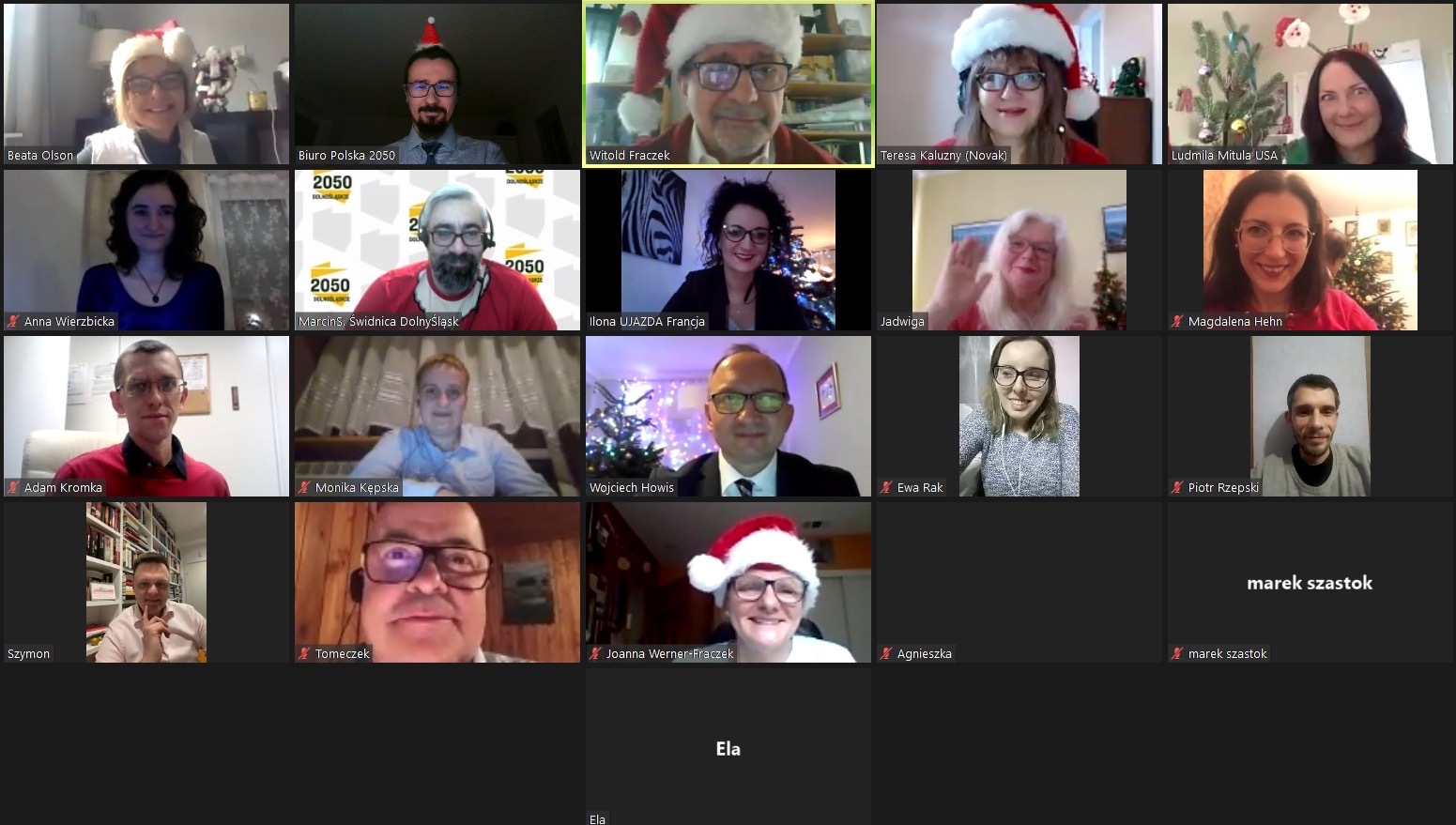 “Były śpiewy po polsku i angielsku, tańce, opowiadania świąteczne, życzenia, łamanie się opłatkiem, wizyty gości specjalnych i po dwóch godzinach jeszcze byli chętni, żeby zostać dłużej. Ledwo zdążyłam przygotować wieczerzę wigilijną w Dallas” – śmieje się Ludmiła Mitula, znana w Polsce 2050 wolontariuszka z USA, która prowadzi oba spotkania.