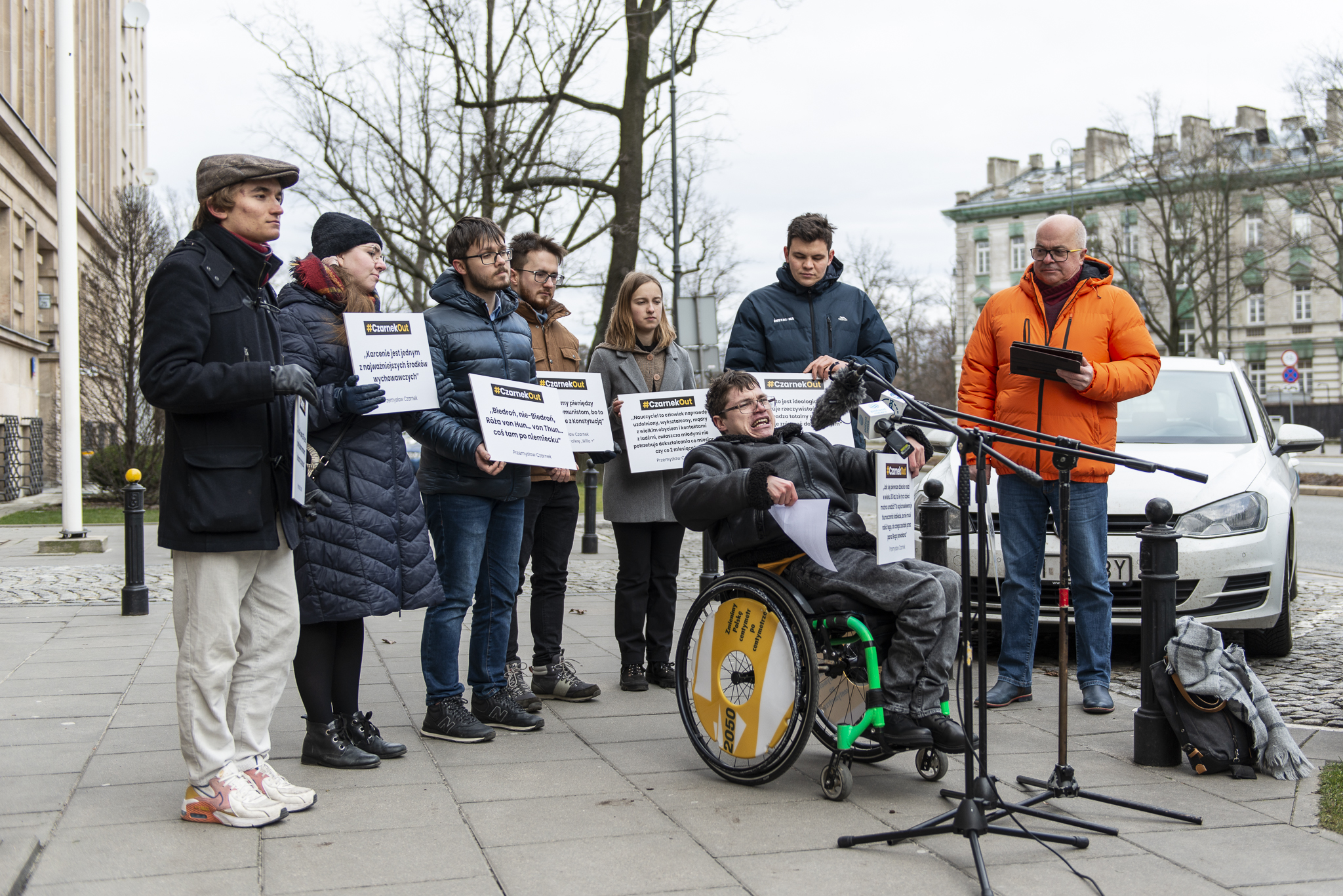 Tomasz Zimoch nawiązał do swoich słynnych słów wykrzyczanych podczas transmisji meczu piłkarskiego “Panie Turek, kończ pan ten mecz” i wspólnie z przedstawicielami Pokolenia 2050 wykrzyczeli: “Panie Czarek, kończ pan tę grę”.