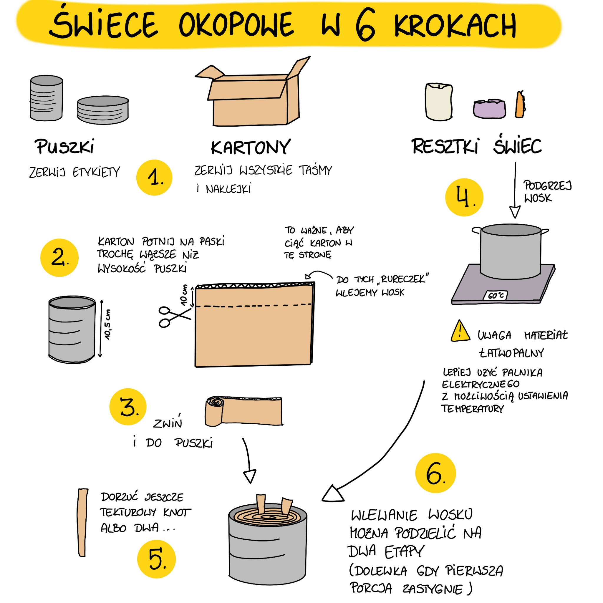Nie dałeś rady pojawić się na warsztatach? Podpowiemy jak zrobić świece samemu, można to zrobić w 6 prostych krokach. Wystarczą do tego proste przedmioty, których używamy na co dzień w domu. Na poniższych zdjęciach pokazujemy co dokładnie należy zrobić. A jeśli dalej potrzebujesz pomocy, to skontaktuj się z nami i chętnie pomożemy – mazowieckie@polska2050.pl