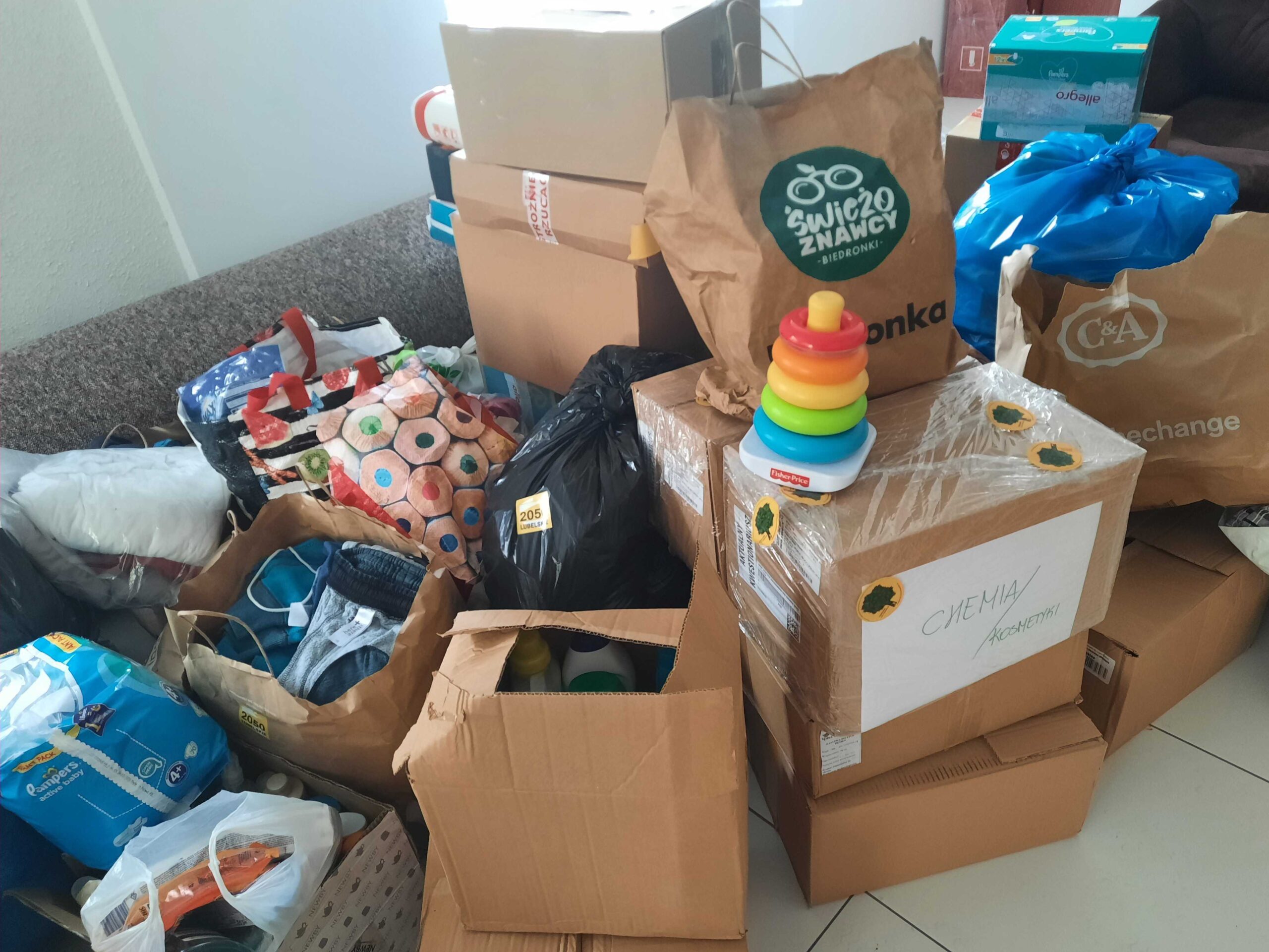 W ubiegłą niedzielę nasi wolontariusze odwiedzili Ośrodek dla Cudzoziemców w Bezwoli. Zostały przekazane ogromne ilości artykułów higienicznych, środkami czystości, ubrań i butów. „Mamy teraz bezpośredni kontakt z jedną rodziną i w najbliższą sobotę ponownie jedziemy z paczkami oraz kolorowankami, kredkami, puzzlami, zabawkami dla wszystkich dzieci. Szukamy również pracy dla Afgańczyka, którego CV liczy 8 stron. Przez ostatnich 15 lat walczył o prawa kobiet i dzieci do edukacji w Afganistanie. Wiele osób odczuwa bezsilność w związku z tym co się dzieje i myślę, że możemy w ten sposób działać. Można wspomagać takie ośrodki konkretną pomocą i zwyczajnie poznać i przywitać ludzi tam przebywających” – relacjonuje Milena z naszego lubelskiego oddziału Stowarzyszenia Polska 2050.